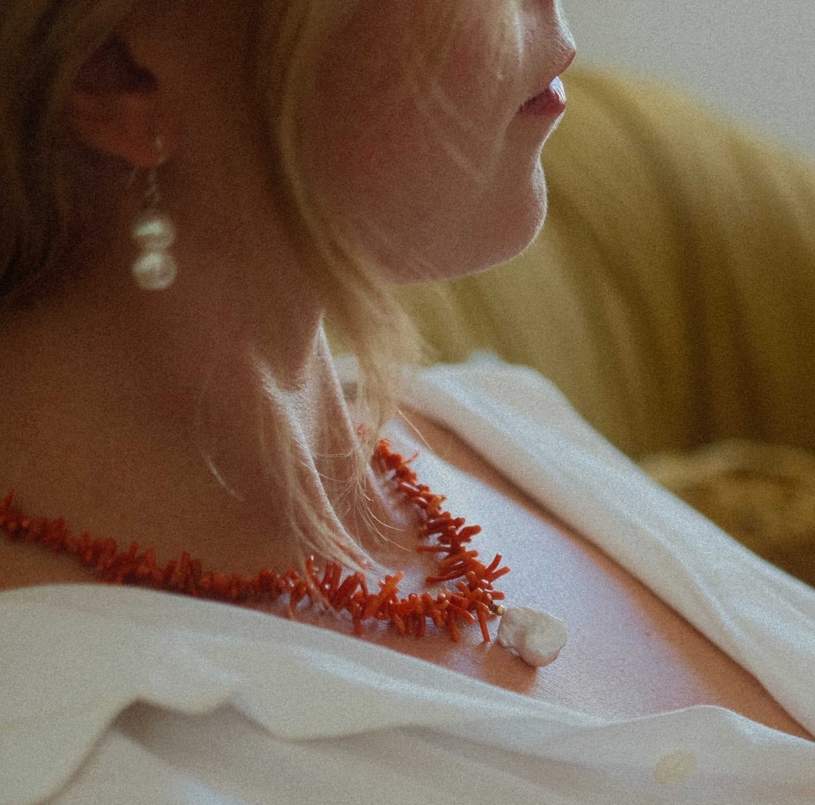 Echte Mittelmeerkoralle mit wunderschöner Barockperle als Anhänger. Verschluss ist verstellbar und wasserfest.